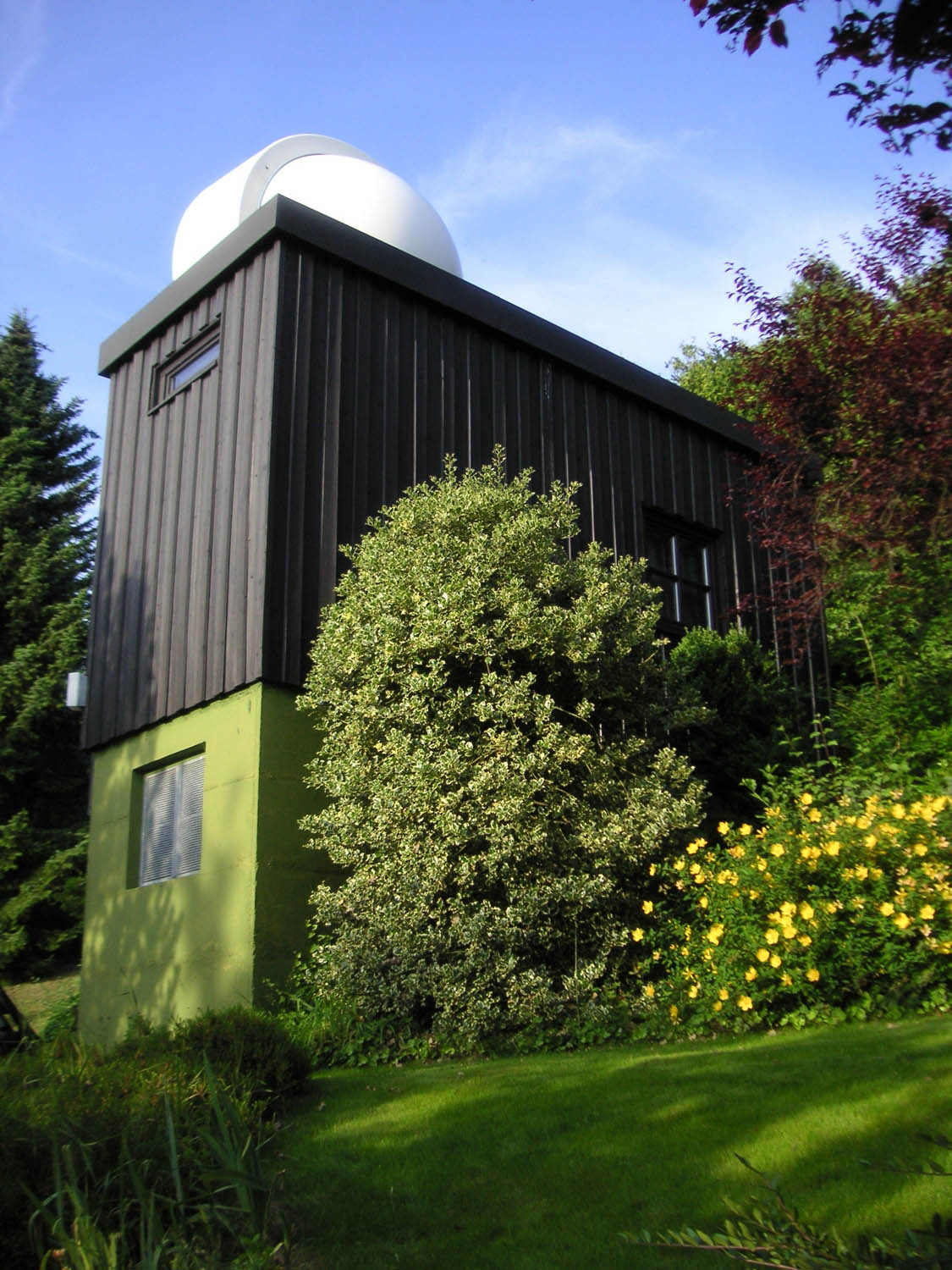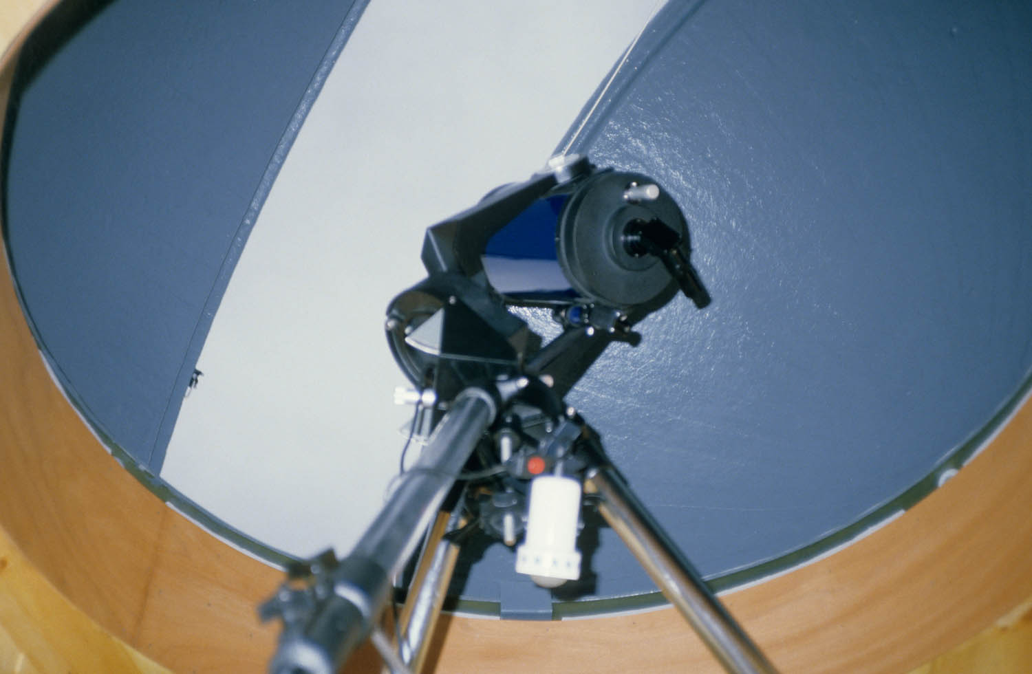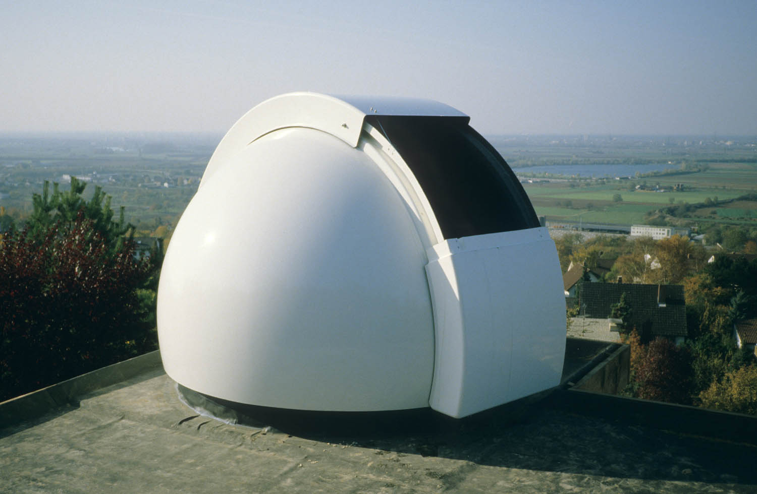Unsere Kuppel ist das Erstmuster der 2,1m Spaltkuppeln. Sie wurde im Winter 1983/84 ausgeliefert, von uns in Eigenregie montiert und ist seitdem problemlos im Einsatz. Dabei hat sie auch schweren Stürmen wie 1999 dem Orkan „Lothar“ standgehalten, ohne Undichtigkeiten zu zeigen.
