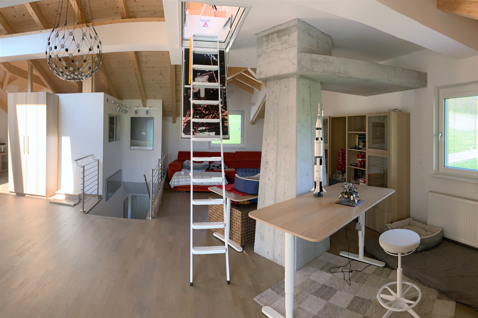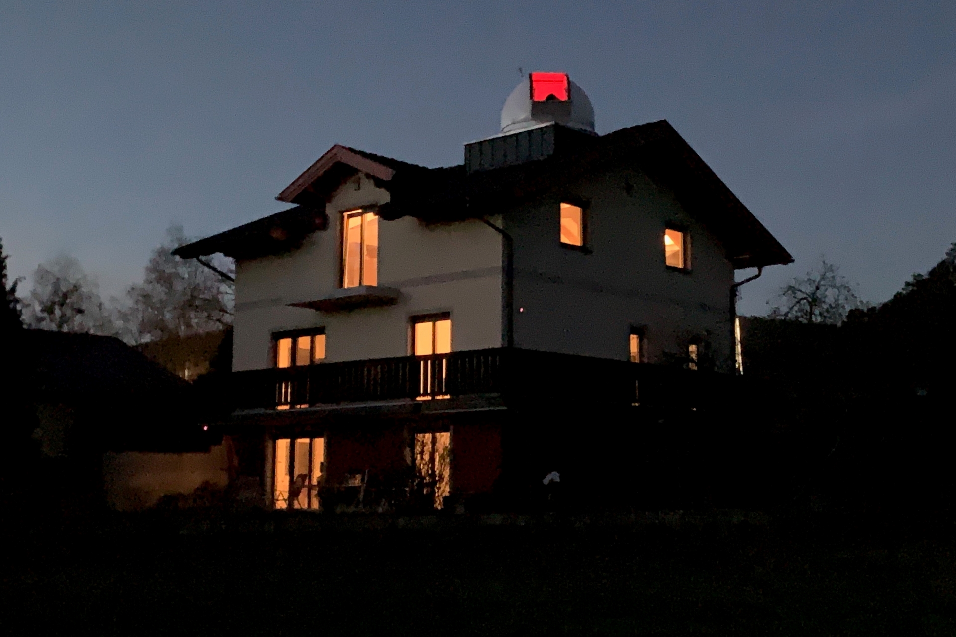 Nachdem schon einige Jahre zuvor die Wahl für den Wohnsitz am Lande unter Bedachtnahme auf astronomische Nutzbarkeit getroffen wurde, folgte in den Jahren 2021/22 der logische Schritt, im Zuge der anstehenden Sanierung des Dachgeschosses den Lebenstraum einer eigenen Sternwarte in die Wirklichkeit umzusetzen. Tatsächlich erwiesen sich die konstruktiven Gegebenheiten beinahe 50 Jahre nach Errichtung des Gebäudes als äußerst glücklich, um den erforderlichen, massiven Unterbau für die Instrumentenplattform schaffen zu können.