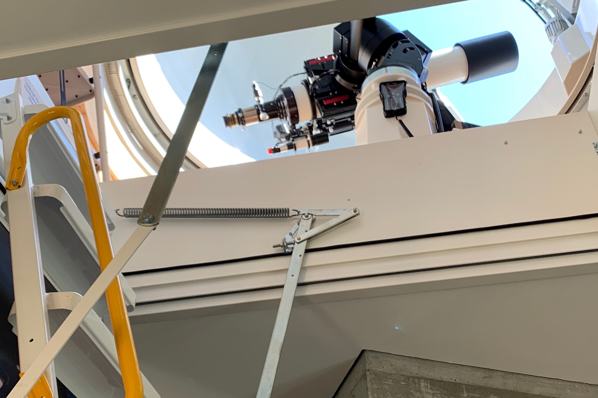 Über eine Falltreppe führt nun der Weg mitten aus dem Wohnbereich durch eine Öffnung im begehbaren Boden der Sternwarte zu einer mehr als angemessenen Behausung 2er Ausnahmerefraktoren, zu welchen mir weitere glückliche Umstände im Laufe des Lebens verhalfen. Angesichts dieser über die Jahre hinweg lieb gewonnenen Instrumente fällt es schwer, sich einzugestehen, dass das wahre Wunderwerk dennoch in der Kombination von Kuppel und Montierung besteht. Letztere besticht durch ihre Präzision und hat darüber hinaus alle Mittel an Bord, um die Kuppel automatisch ihren eigenen Aktivitäten folgen zu lassen. Das beschränkt sich nicht darauf, synchrone Bewegungen auszuführen, sondern es lässt sich auch das Parken und Entparken des Teleskops automatisch mit dem Schließen und Öffnen des Torspalts verbinden. Da ich im Sternwartenbetrieb ohnedies immer vor Ort bin, lässt sich alleine damit die Steuerung einer Photosession hinlänglich mit gängiger Bildakquisitionssoftware aus der warmen Stube bewerkstelligen, oder man kann sich in der Zwischenzeit auch beruhigt anderen Dingen zuwenden und gegebenenfalls auch schlafen gehen.