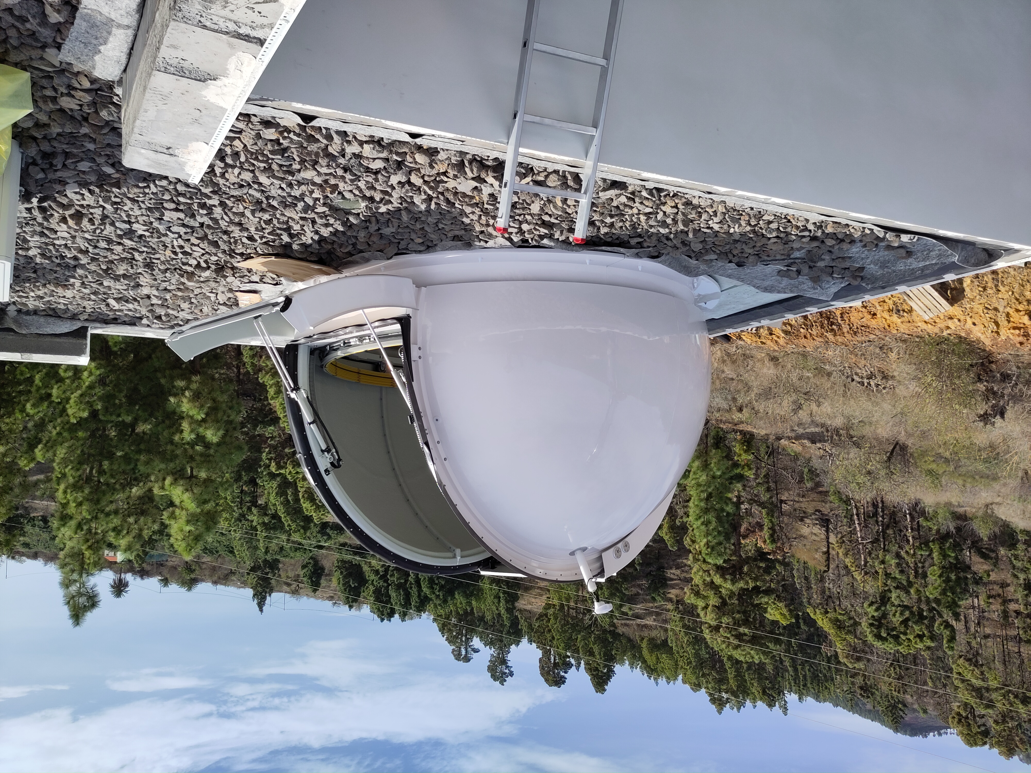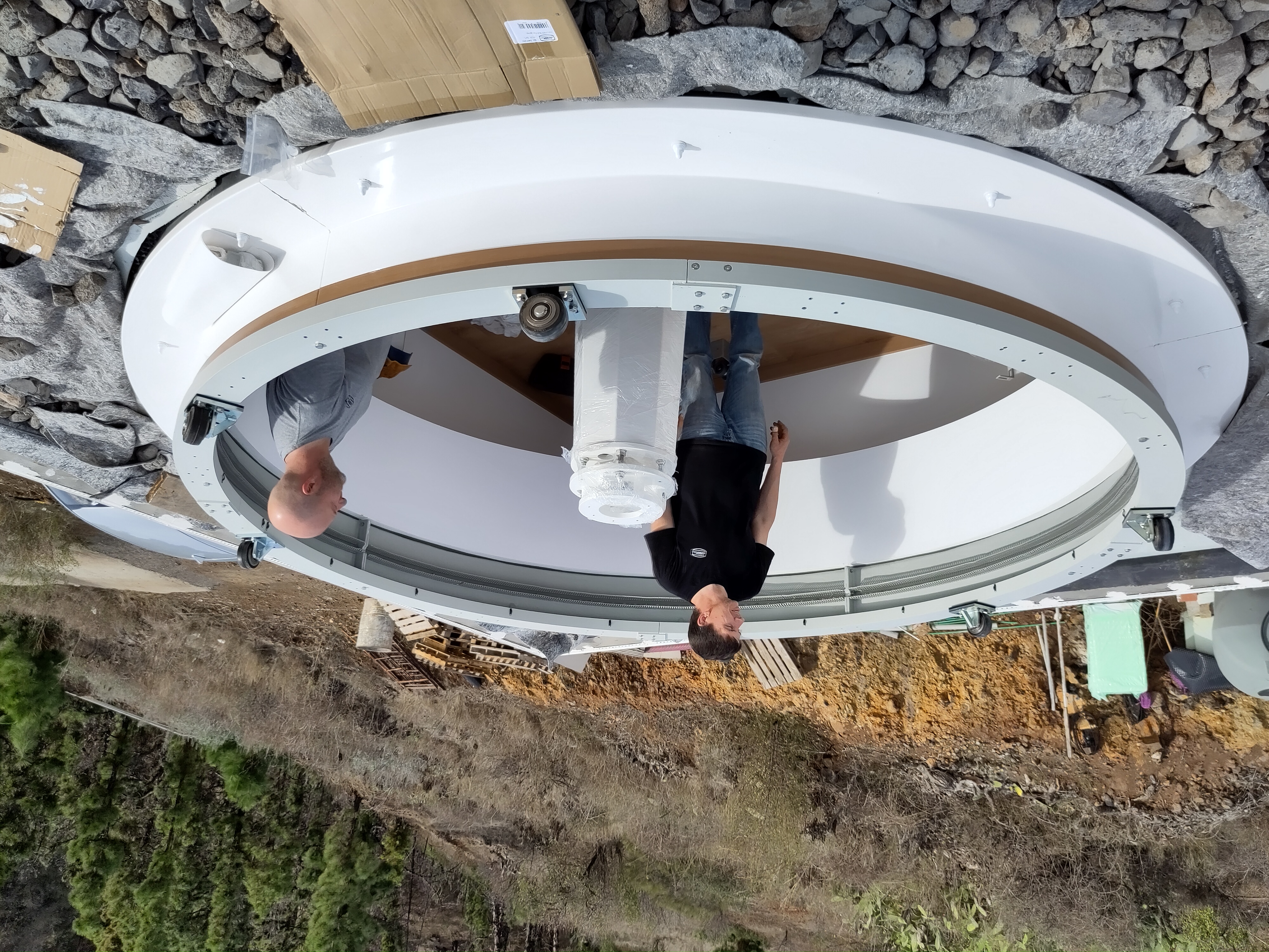 Im November 2023 wurde auf unserem Haus in La Palma (in der Nähe von Tijarafe) in 760 m Höhe eine 3.2 m Spaltkuppel von Baader Planetarium (BP) installiert. Den gesamten Transport der Kuppelteile und der Teleskope auf die Kanaren wurde von BP reibungslos organisiert.