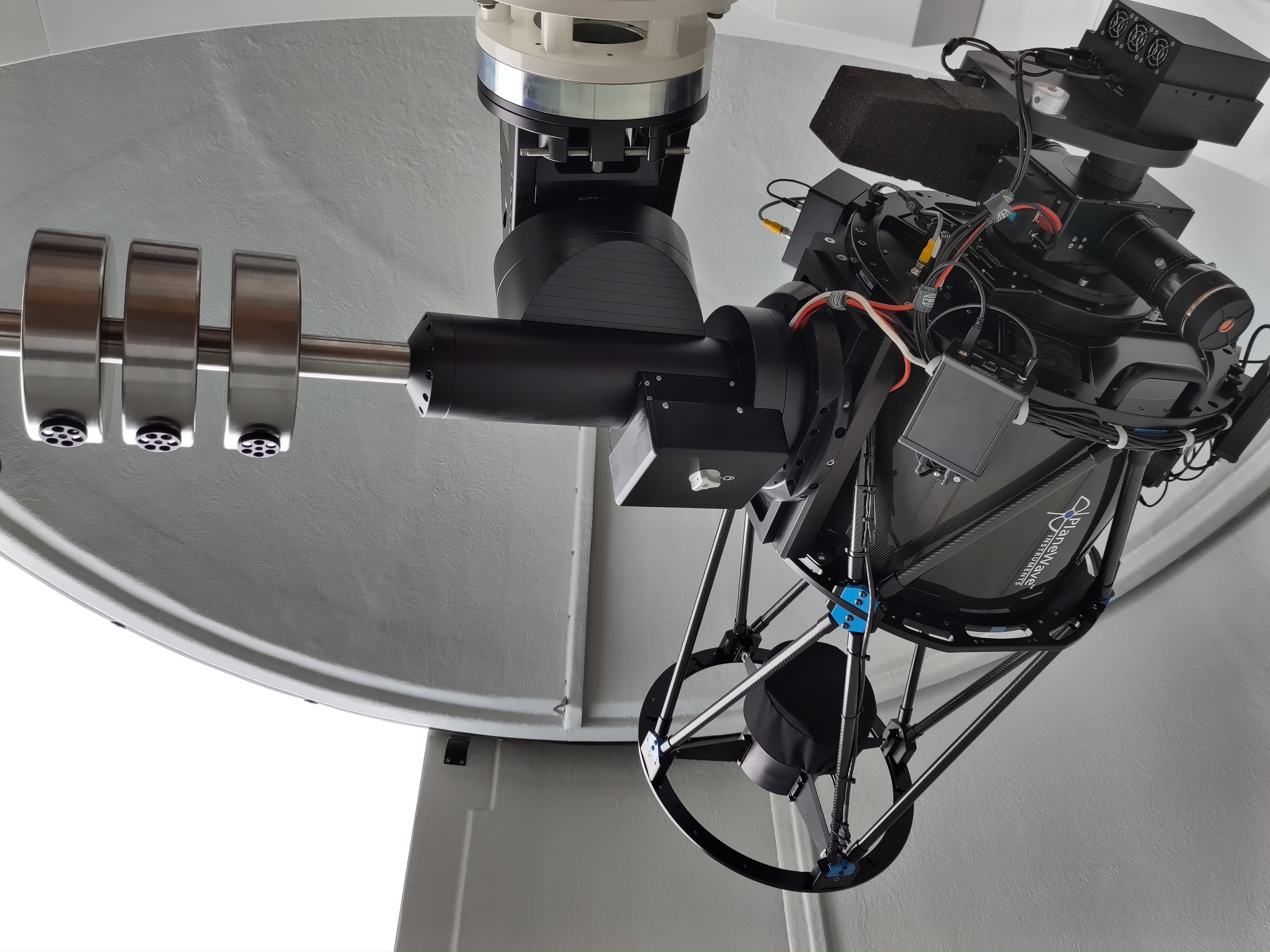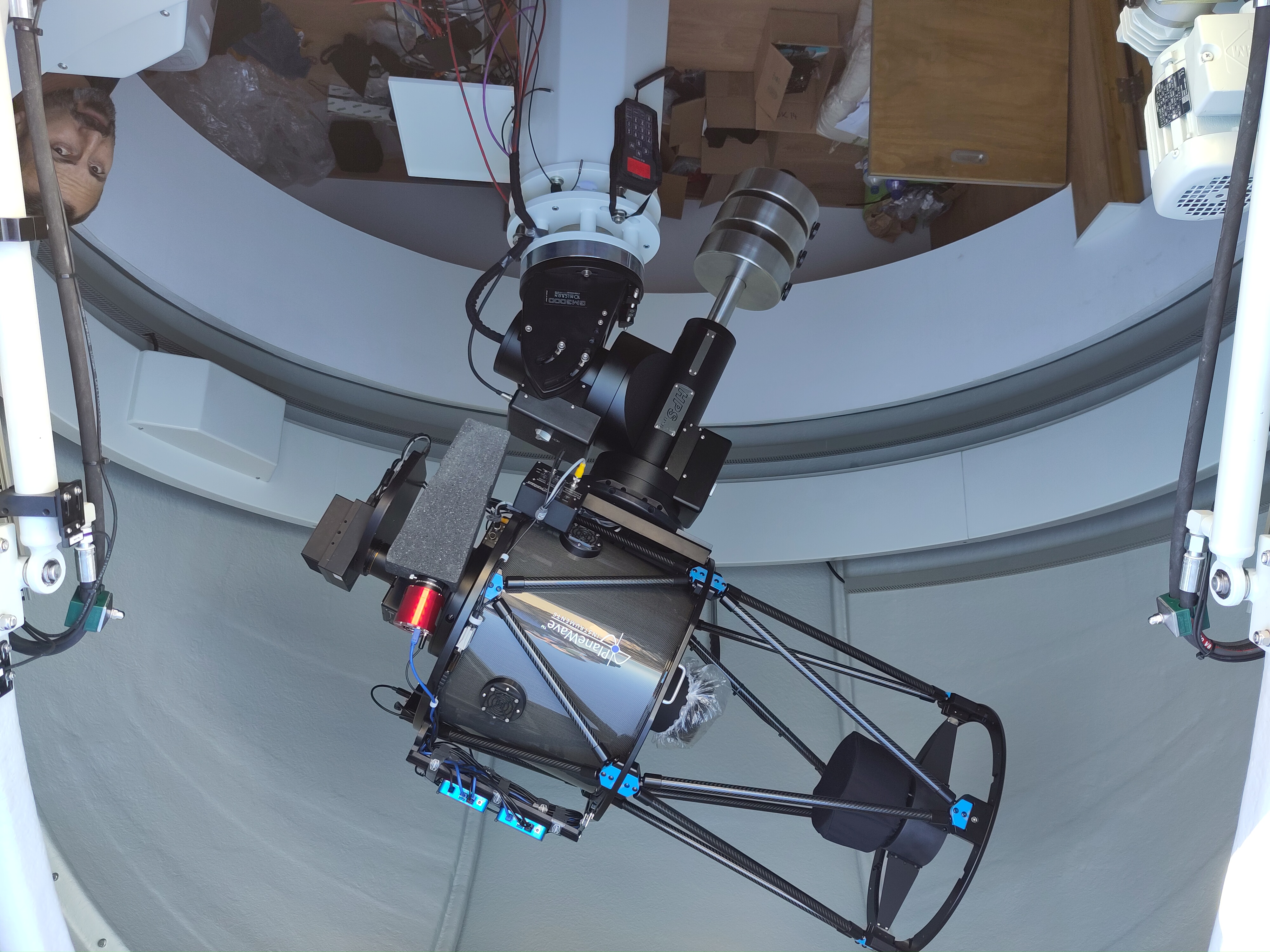 Eine Woche später kam dann das BP Teleskop-Team, um eine GM3000 mit CDK-17 / DeltaTho350 und einen BP MultiPort Switch mit BACHES Spektrographen zu installieren, der von BP selbst hergestellt wird. Alles lief reibungslos und in einer sternklaren Nacht konnten wir dann auch schon über Plate-Solving ein Pointingmodell mit 40 Sternen erstellen.