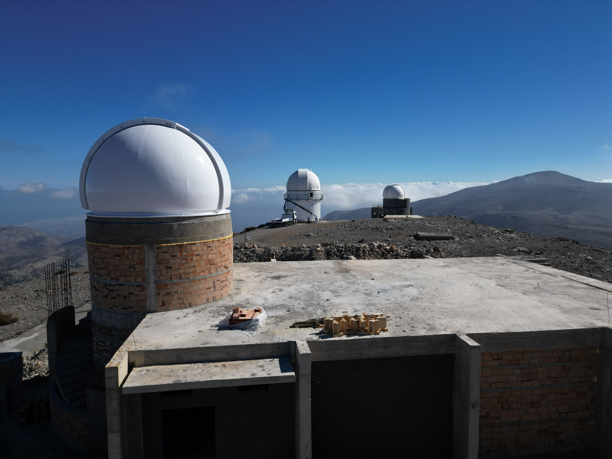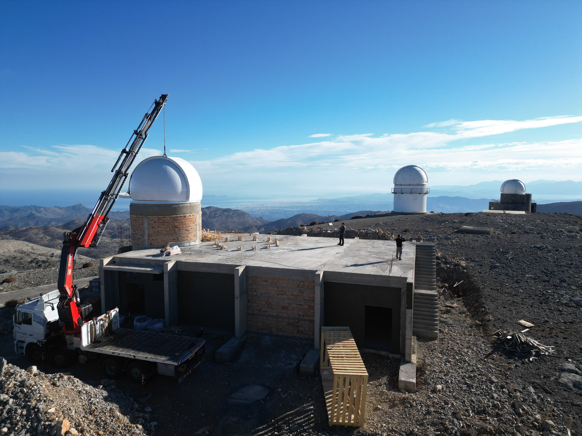 Fast pünktlich zum 40jährigen Jubiläum von Baader Kuppeln auf dem Berg Skinakas, durften wir im Oktober 2025 eine vierte Kuppel (5.3m) am gleichen Standort installieren. Folgende weitere Baader Kuppeln an dieser Location (sortiert nach Datum) verrichten nach wie vor ihren Dienst und trotzen den hohen Windgeschwindigkeiten: