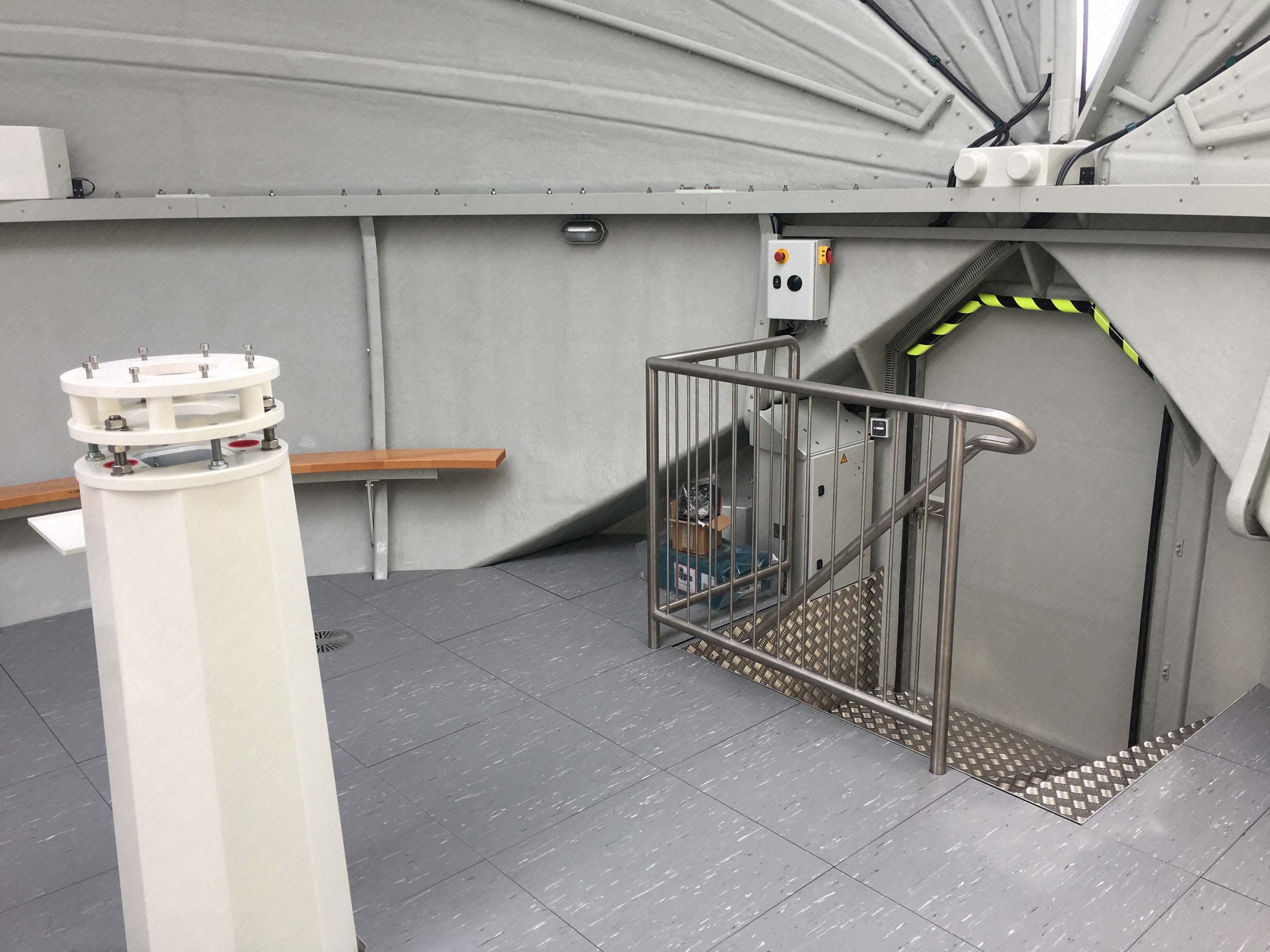 Die Teleskope – ein 25cm TEC-Refraktor und ein 20"-Spiegelteleskop von Planewave Instruments – werden in den den nächsten Wochen parallel auf einer azimutalen AZ 4000 HPS Montierung des italienischen Herstellers 10Micron installiert. Zusätzlich werden vier kleinere Beobachtungsinseln u.a. für Schülerpraktika an der experimenta aufgestellt.
