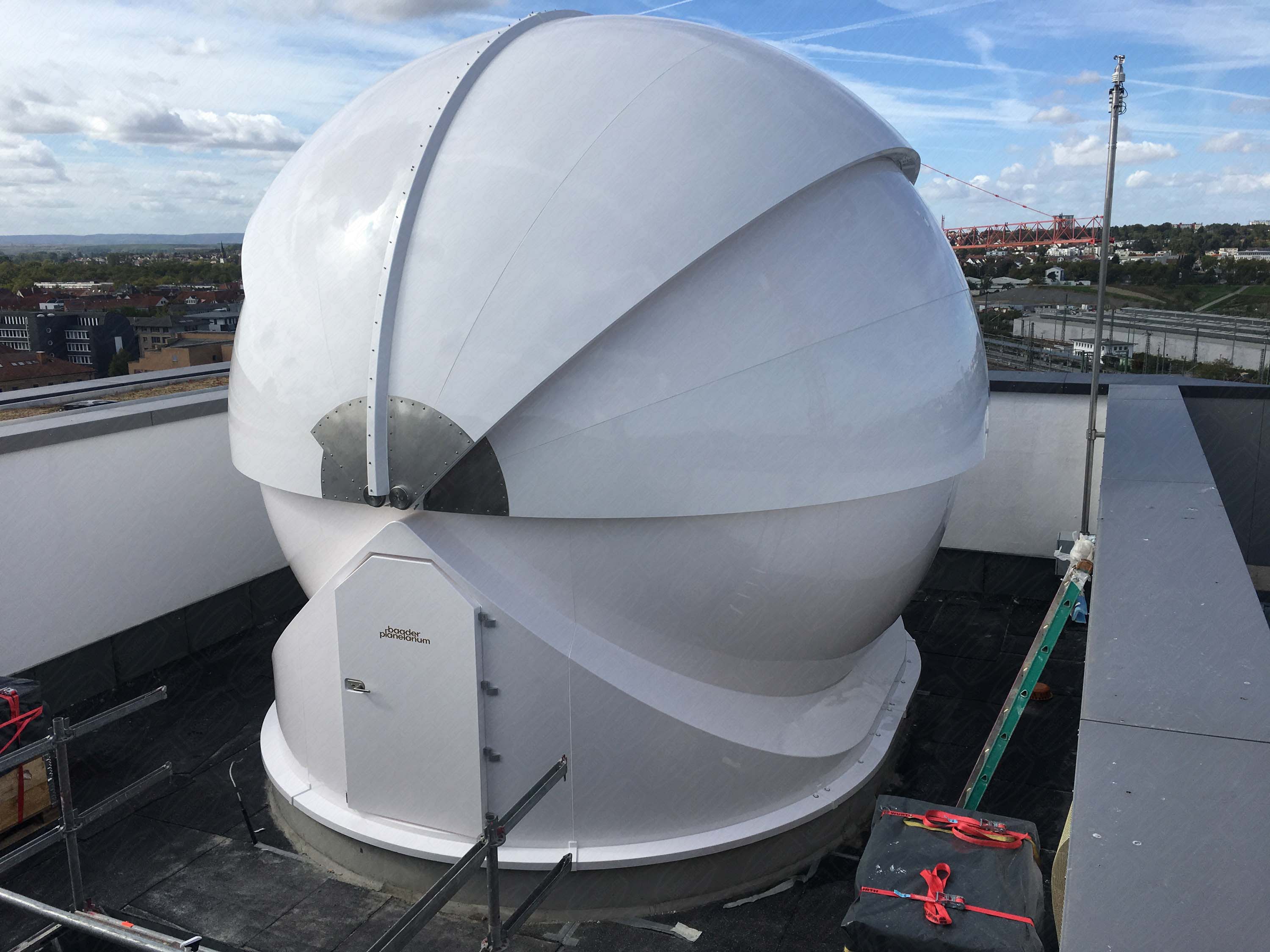 Am 20. September 2018 wurde die Kuppel auf das Gebäude gesetzt. Der Anspruch, ein Science Center auf dem modernsten Stand der Technik zu errichten, galt auch bei der Sternwarte. Daher freuen wir uns, dass wir den Zuschlag für den Bau der Kuppel und die Einrichtung der Sternwarte erhalten haben.