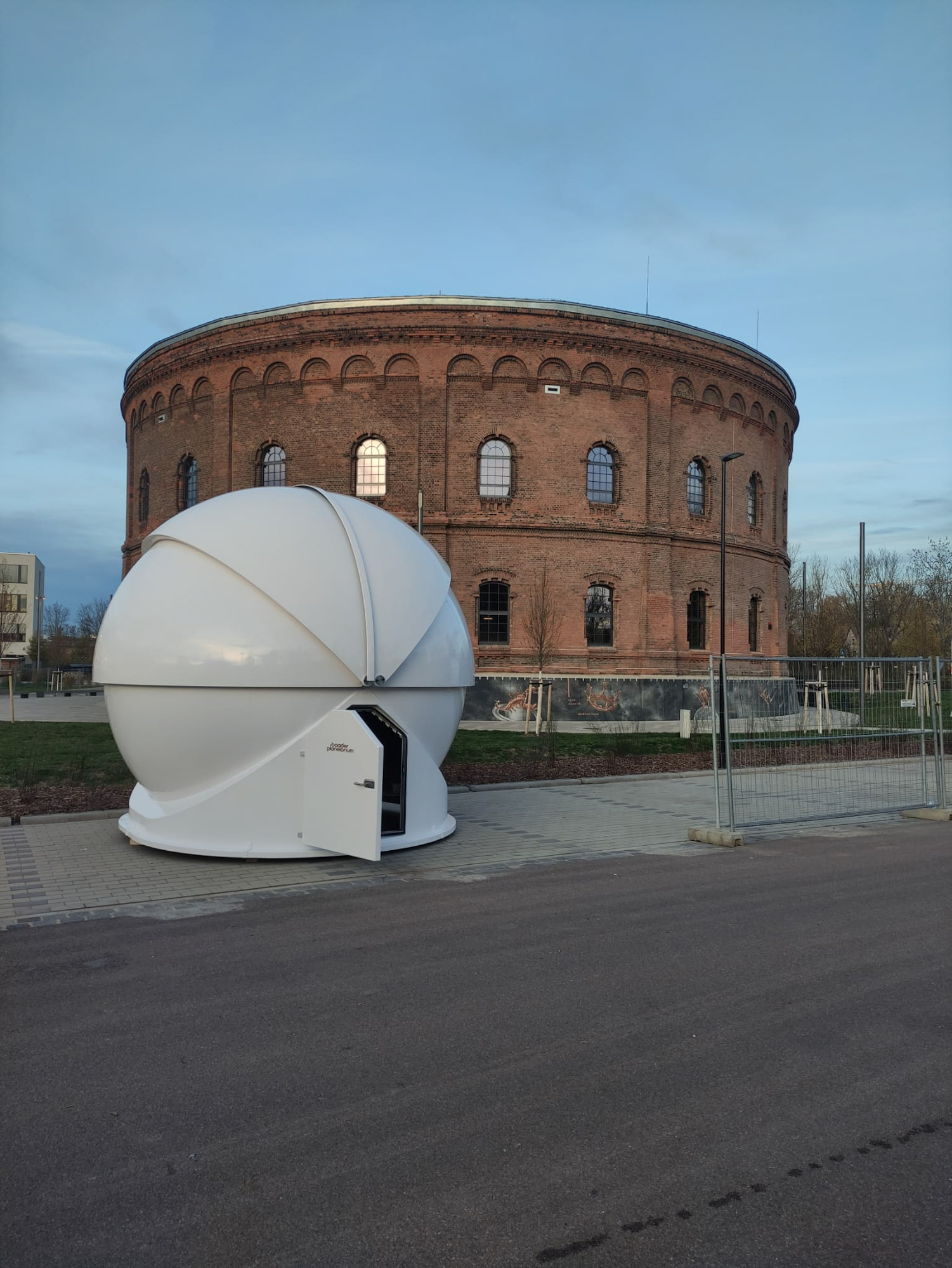 Wir waren überaus erfreut, als wir den Zuschlag für die Errichtung der Sternwarte im Planetarium Halle (ehemaliger Gasometer) erhielten. Durch die vollständige Neugestaltung des Gebäudes (siehe Bildergalerie der Bauphase) konnten wir in enger Zusammenarbeit mit der örtlichen Projektplanung eine ideale Umgebung schaffen, in der die Sternwarte ihren angemessenen Platz findet.
