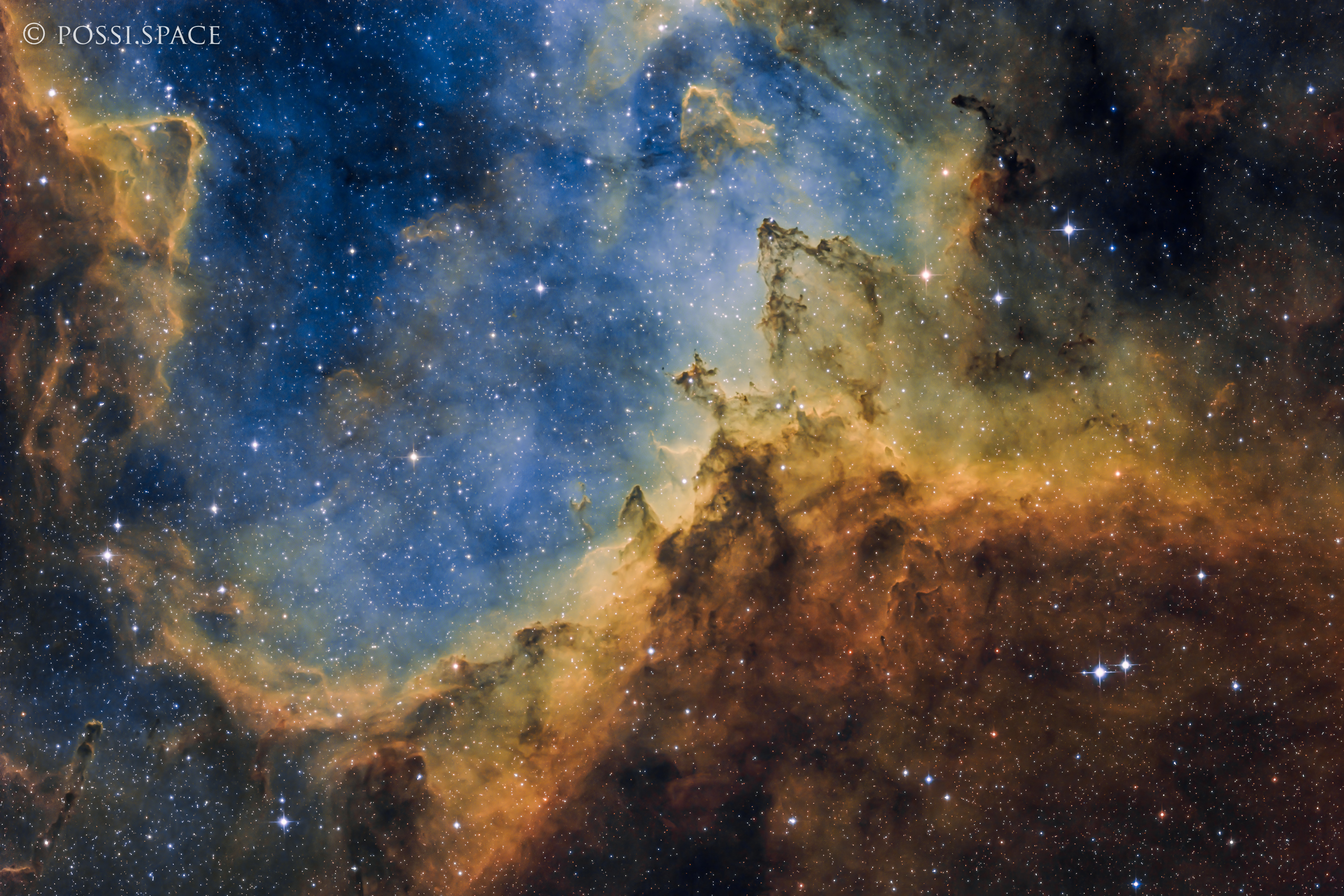 - Der Planewave CDK17 ist ein optisch exzellentes, steifes, kollimations- und temperaturstabiles Spiegelteleskop professioneller Bauart. Ich habe den altertümlichen Fokusantrieb auf einen modernen, lautlosen Fokusmotor umgebaut und den originalen 0,66x Reducer für f4,5 bei 1965mm Brennweite installiert. Eine Vollformatkamera wird tadellos ausgeleuchtet, es gibt keine chromatischen Farbfehler trotz Reducer. Die Bildqualität ist, richtig gutes Seeing von 1,1...1,4" vorausgesetzt (haben wir hier ca. 20 Nächte im Jahr), absolut bestechend und für die extrem hochauflösende gekühlte Kamera mit dem fantastischen Sony BSI-Sensor mit 61 Magapixeln ausreichend.