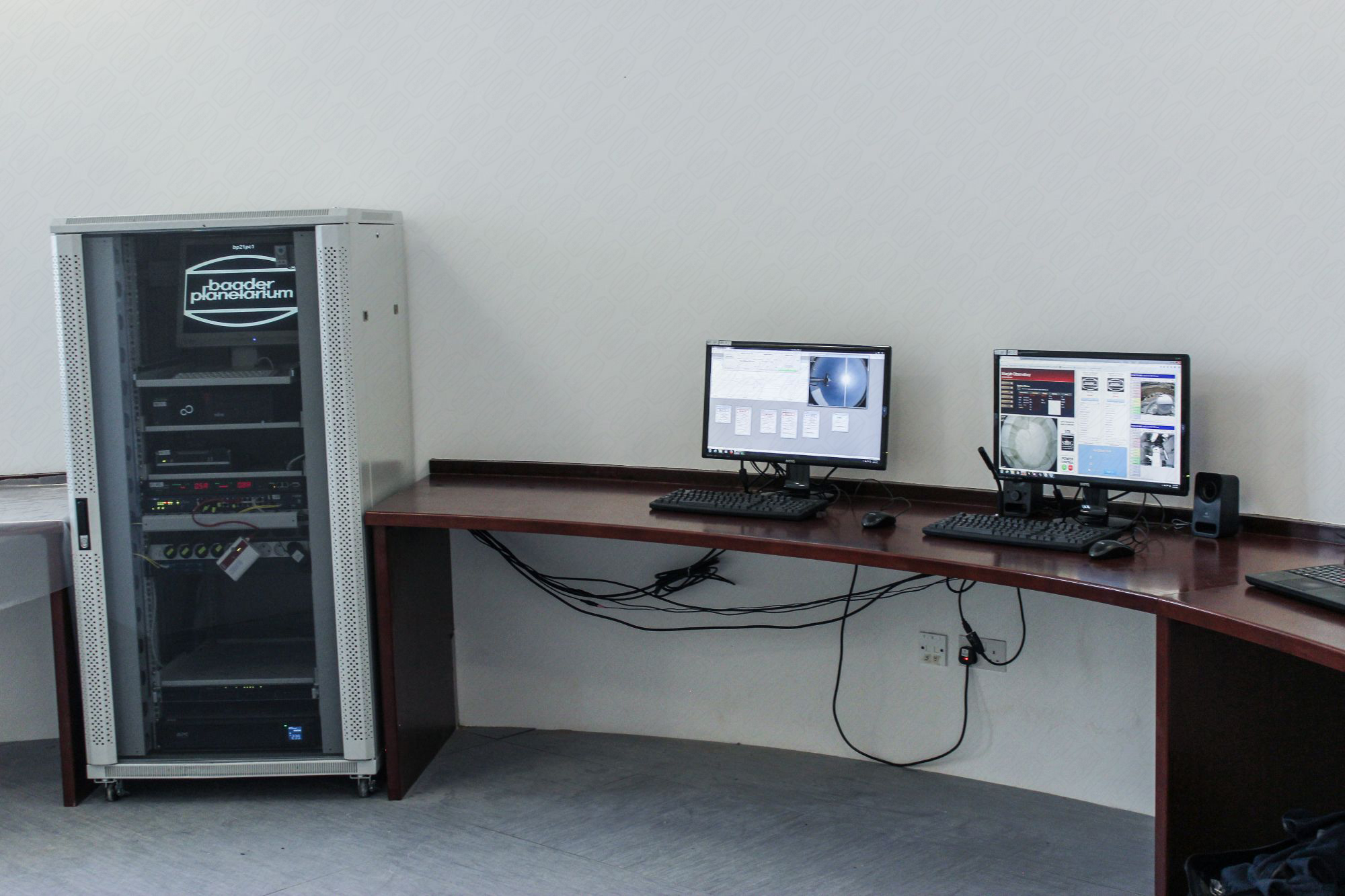 Note a TV report of the project inauguration (the Sharjah Center for Astronomy & Space Sciences). Our part was the (white) observatory building with all telescopes and full integration into the Planetarium-IT. The purpose of the installation is to present life stream images of astronomical objects onto the planetarium dome as well as onto any beamer inside the building - and lastly - directly to the local TV-station. It is a unique opportunity for any Science Museum and Planetarium Institution, to interlink a working observatory with local Universities and use it for student and public education and excitement alike. There is no better way to create awareness of the Universe around us and to draw young people into becoming aware of the value of a career in sciences. The "public-outreach-factor" is unparallelled, when life-content of astronomical events can be created locally and broadcast in the TV for drawing the public to the Museum or Planetarium in a way not thought possible until now.