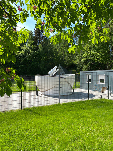 Obwohl wir vor finanziellem Hintergrund jede Investitionsentscheidung sorgsam abwägen mussten, stand es für uns nie in Frage, bei einem der wesentlichen „Kernelemente“ jeder Sternwarte – der Kuppel – auf hochwertige Qualität zu setzen. Der Vergleich der Eigenschaften und die Besichtigung der Kuppeln verschiedener Hersteller bestärkten uns in der Entscheidung, einen hochwertigen 4,5 m AllSky-Dome der Firma Baader Planetarium zu wählen. Dieser ist für unsere Zwecke optimal geeignet und wird unsere Instrumente auf lange Zeit zuverlässig beschützen. Hervorheben möchten wir auch die hervorragende Beratung, die jederzeitige, schnelle Beantwortung unserer Fragen und die Unterstützung in der Planungsphase durch die Firma Baader.