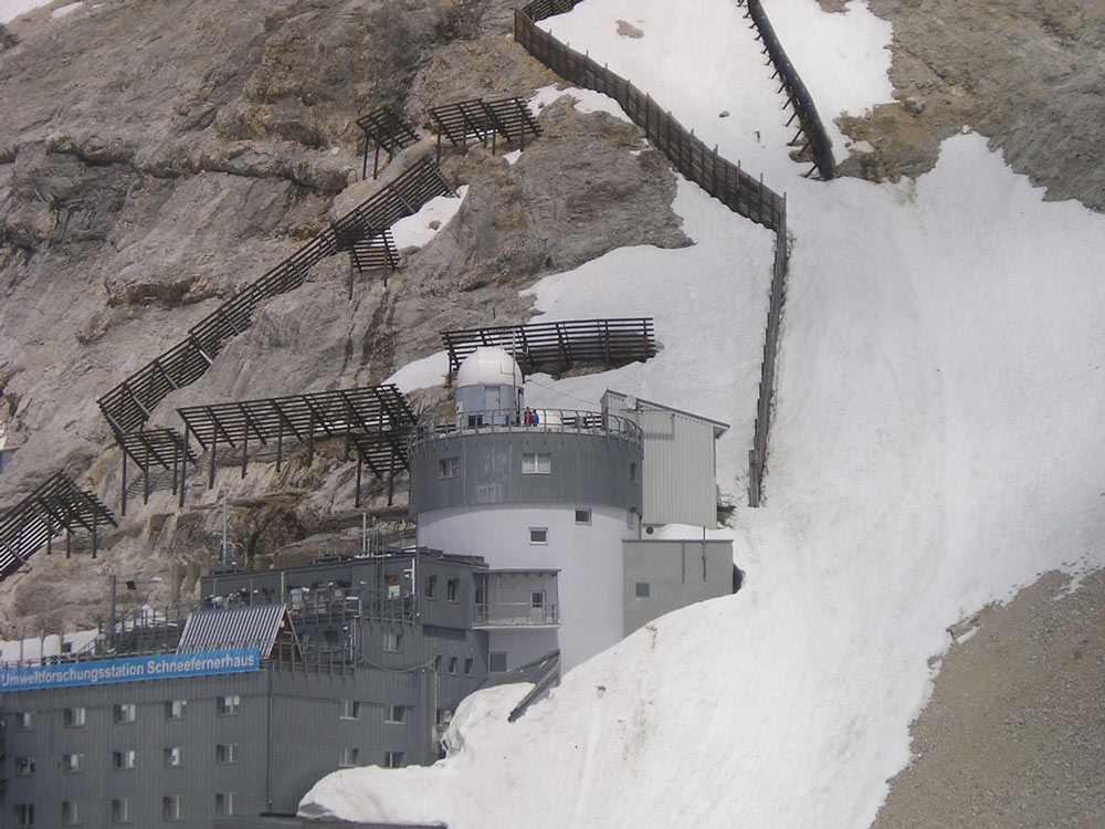 Das Schneefernhaus ist seit 1999 auf 2650 m ü NN (unterhalb des Zugspitzgipfels) die höchstgelegene Umweltforschungsstation Deutschlands. Wissenschaftler vieler verschiedener Einrichtungen führen hier kontinuierliche Messungen durch oder arbeiten an Forschungsprojekten.