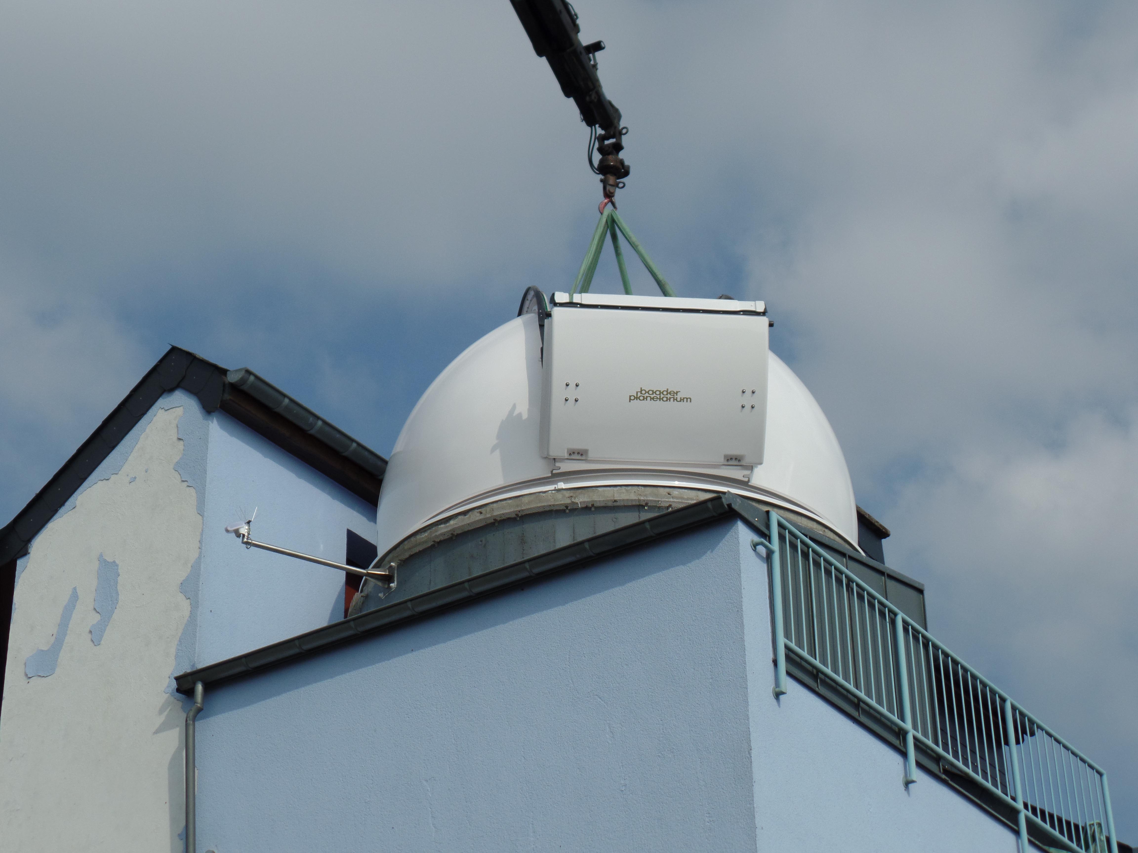 Nachdem ich mir alle Hersteller angesehen hatte ( und durch meine Erfahrungen mit der ersten Kuppel ) blieb dann nur die Baader Planetarium 3,2m Kuppel übrig. Ende März (2019... !) war es dann endlich soweit und das Team von Baader Planetarium hat mir dann in zwei Tagen die neue Kuppel auf meinem Haus montiert.