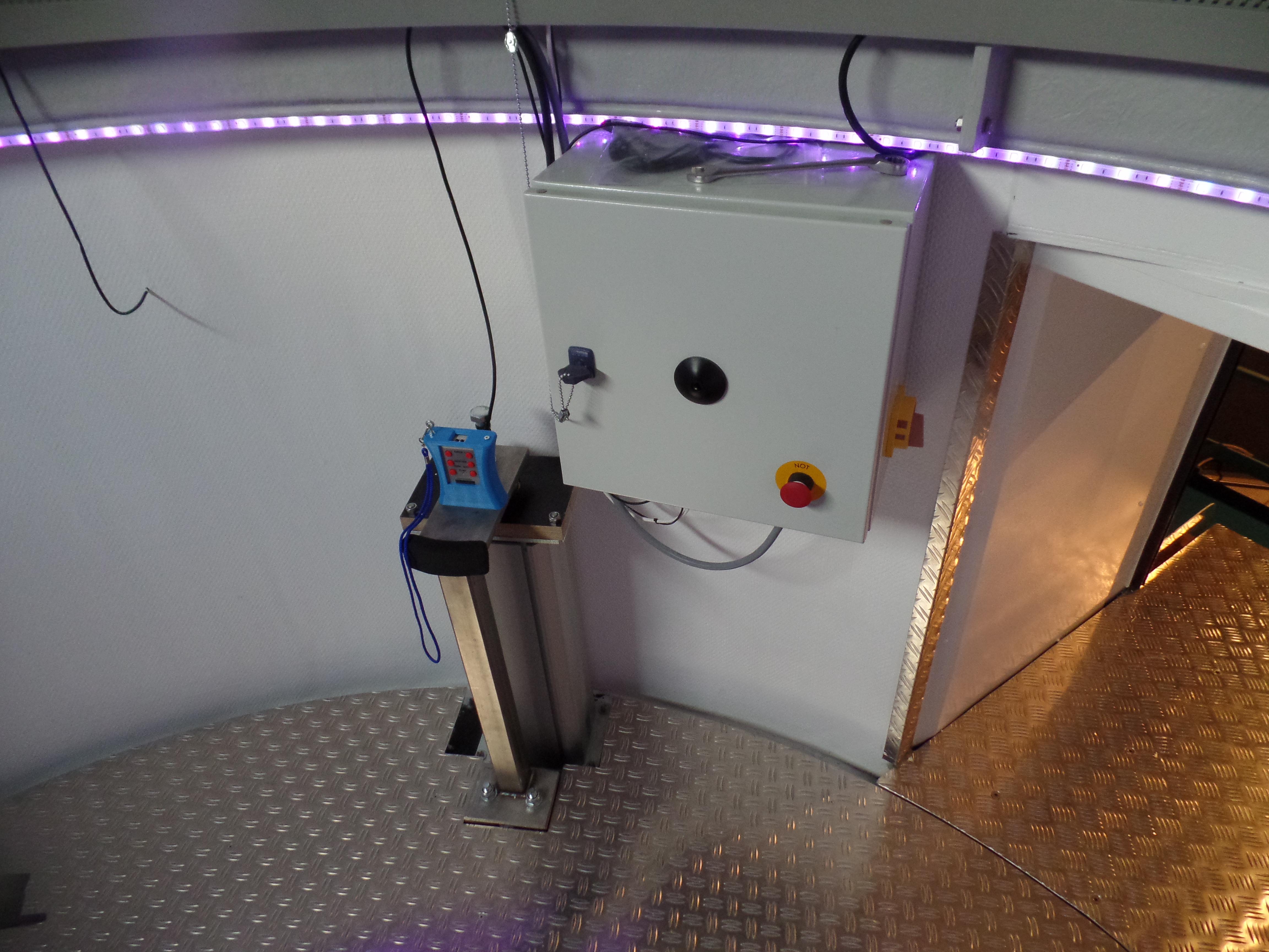 Es ist so super - endlich eine Kuppel zu haben die tut was sie soll - und endlich wieder mit meinem C14 beobachten - anstatt mit kleinen Teleskopen auf dem Balkon! Die unabänderliche Nähe der Kuppel zur Hauswand machte es nötig, dass Fa Baader eine erweiterte Steuerung und einen Absolutencoder lieferte, durch deren Hilfe sich die Horizontklappe der Kuppel automatisch nach oben schliesst, kurz bevor die geöffnete Klappe der Hauswand zu nahe kommt. Auch das ist ein enormer Luxus gegen früher. Vor allem der Absolutencoder weiss schon beim Einschalten wo die Kuppeloffnung hinzeigt. Ich kann also sicher sein dass die geöffnete Klappe nicht in die Wand reinlaufen kann - auch wenn ich die Kuppel mit der Klappe zur Hauswand stehengelassen habe. Alle Bewegungen funktionieren einwandfrei. Dank der guten Beratung von Herrn Rietze bei der Planung und der Inbetriebnahme ist alles gut gelaufen.