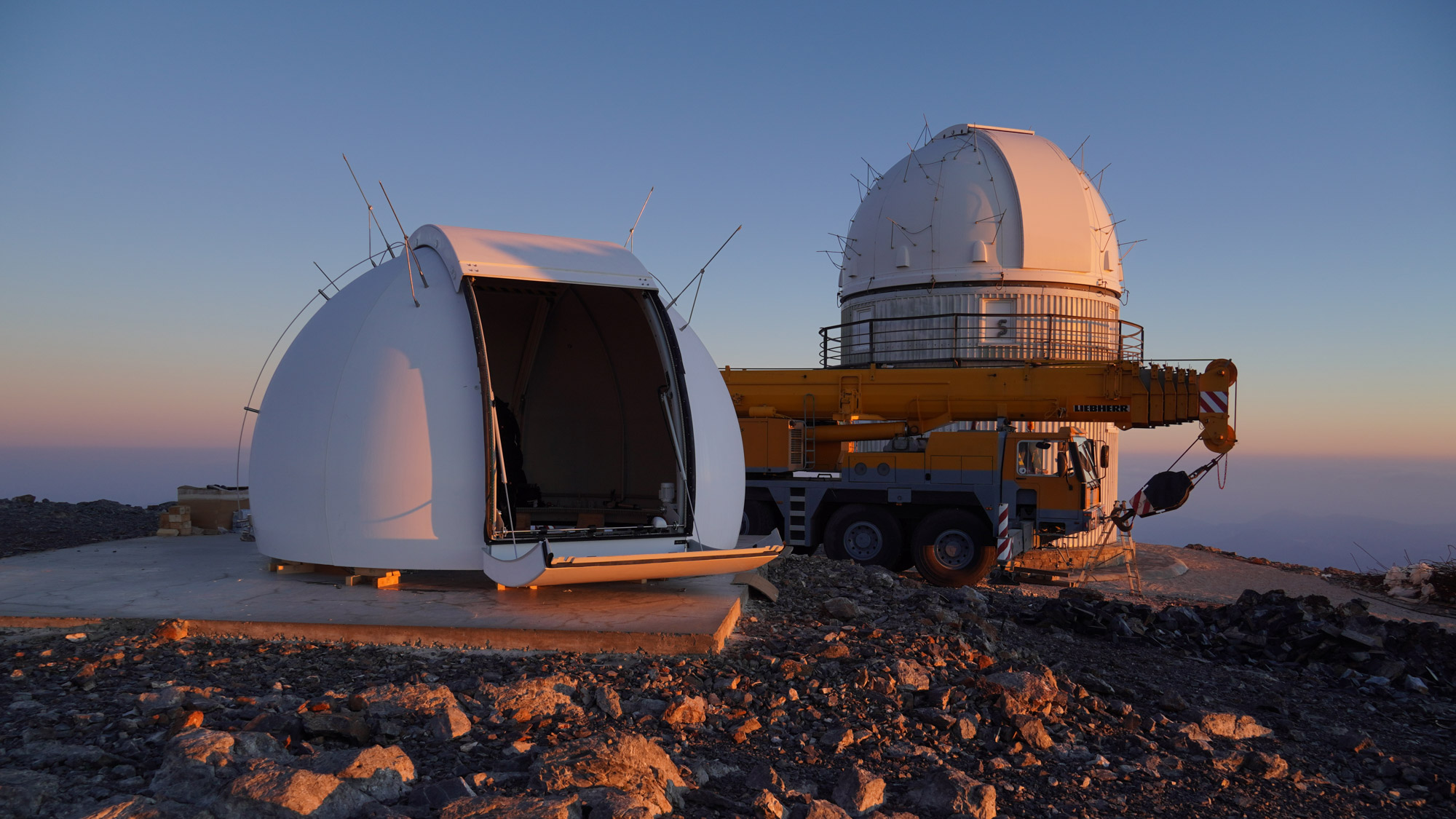 We are pleased to have been commissioned again to install another dome on this legendary mountain - close to the mythological birthplace of Zeus. All domes installed there have to withstand many lightning strikes as well as extremely high wind speeds of up to 250 km/h. The previous domes, which had been erected there by other suppliers, were literally "blown away".