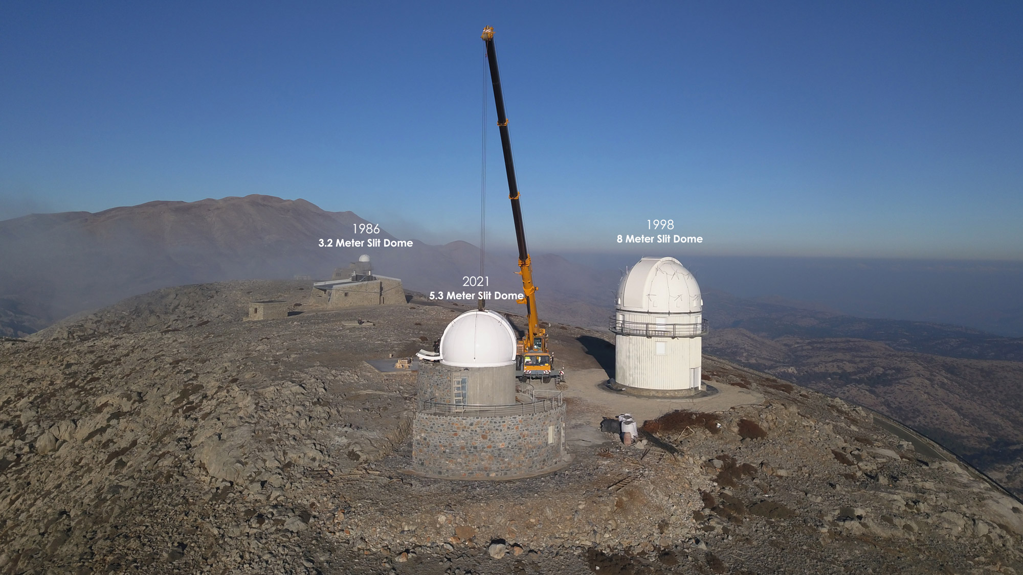 After 35 years of operation of Baader domes on Mt. Skinakas, in autumn 2021 a 5.3m Baader slit dome joined its "siblings", the large 8m dome (built in 1998) and the smaller 3.2m dome (built in 1986), both of which are still operating without problems continuously.