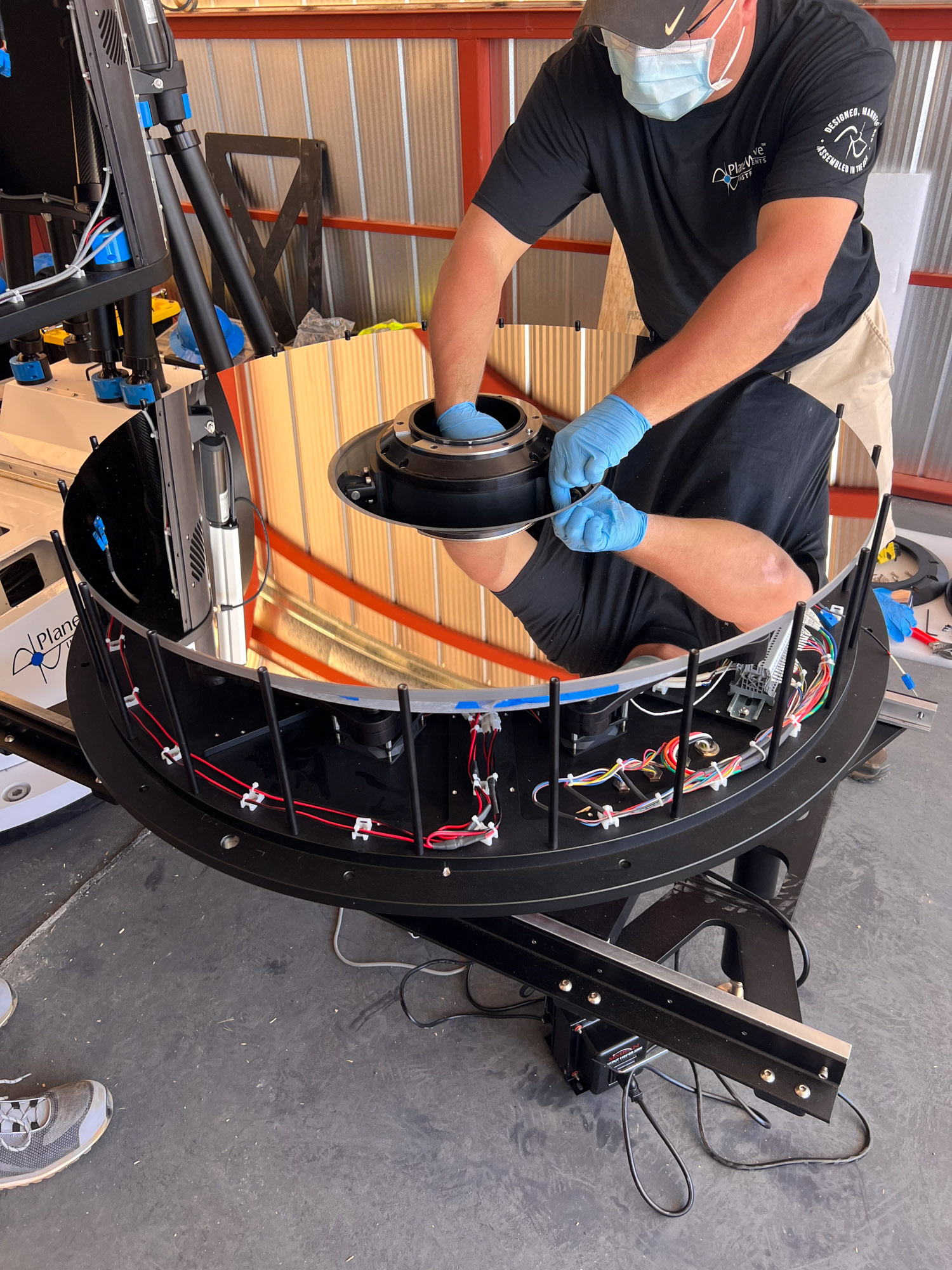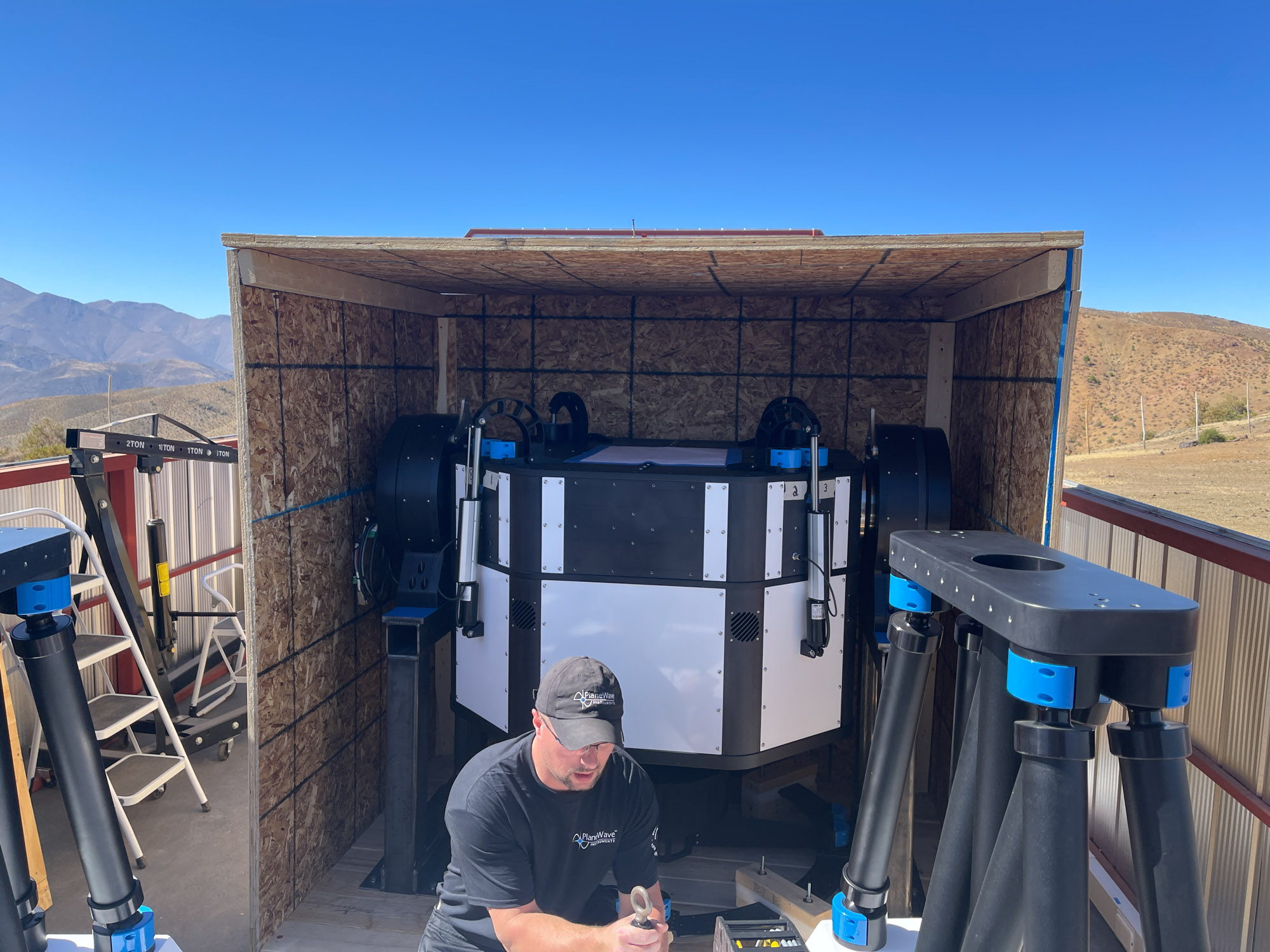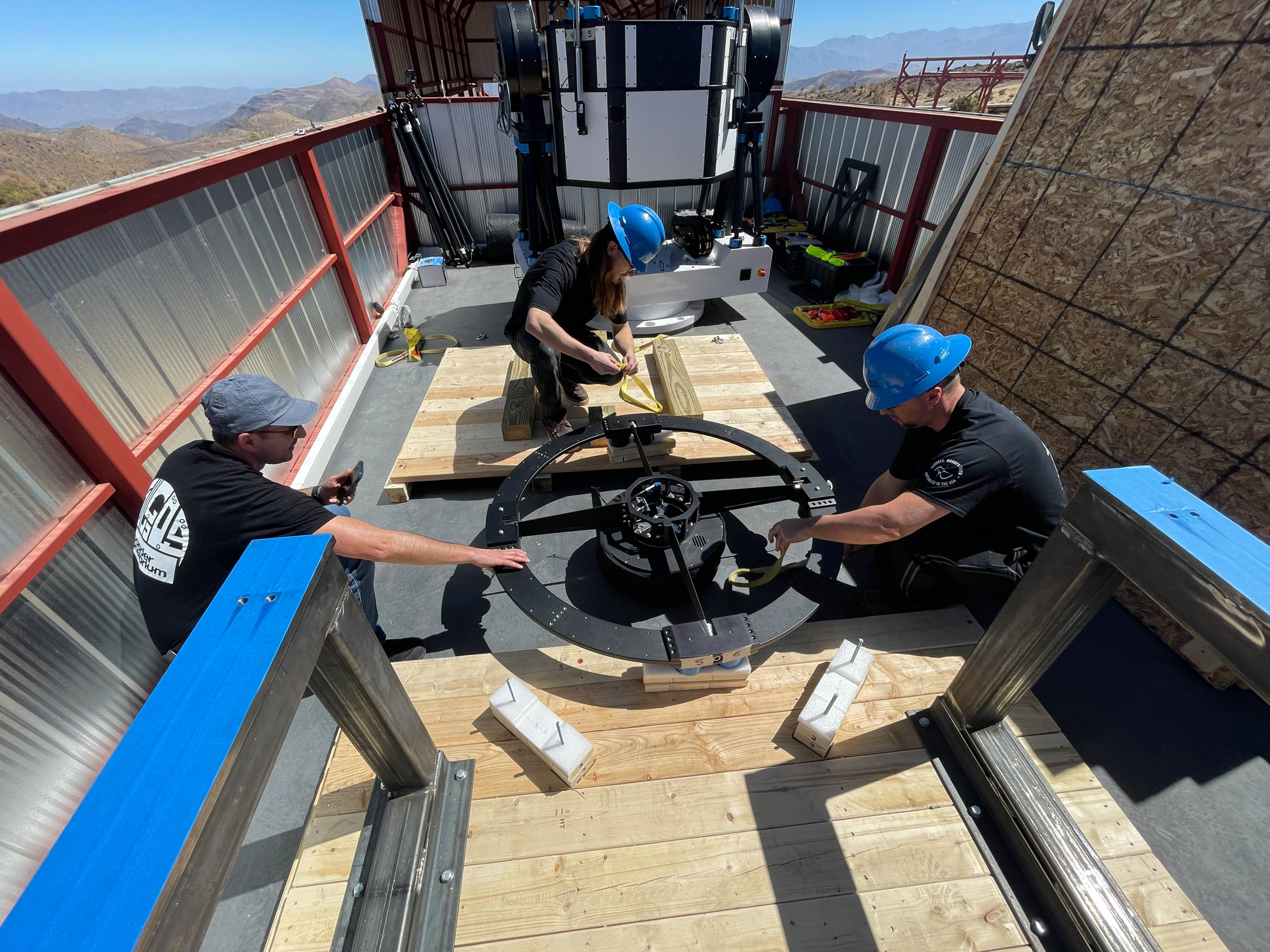 - Technical integration: The 40″ f/6 system with a 6000 mm focal length is based on an alt-azimuth mount, which enables high tracking accuracy (better than 1″ over 10 minutes). The biggest challenge here was to configure all instrument connections and the software control so that they work smoothly despite the sometimes harsh environmental conditions. Our team worked closely with our colleagues at PlaneWave to bring the system online quickly.