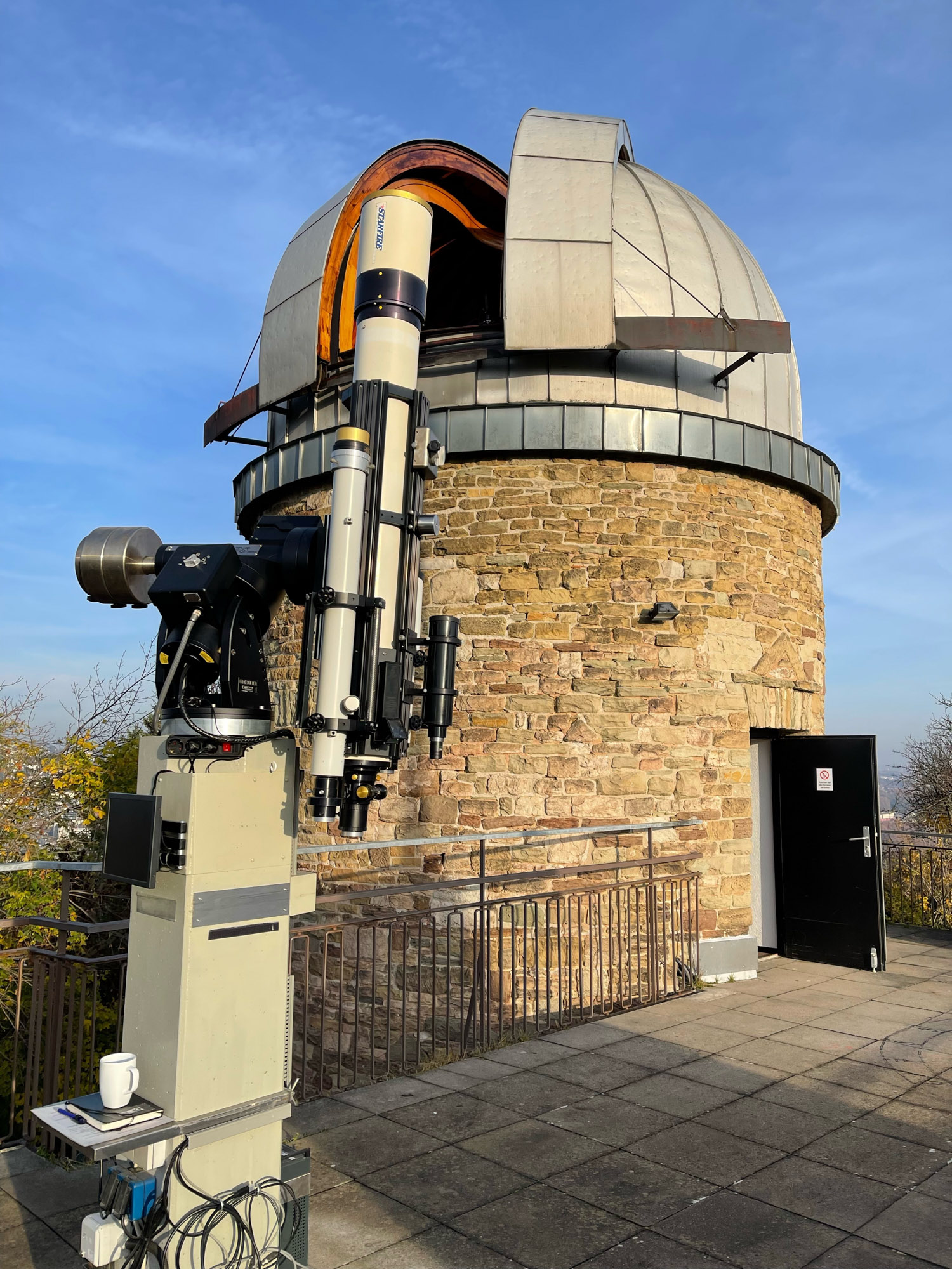 After we had already set up a 10Micron GM3000 HPS with 7" StarFire and 4" Zeiss refractor in a "shelter" at the Stuttgart Observatory in 2017, we have now been commissioned to set up a new "Astrograph 3.0" observation station in an existing dome from a third-party supplier. It will be used primarily for astrophotography, for research on star occultations, and also for related research activities such as spectroscopy and photometry.